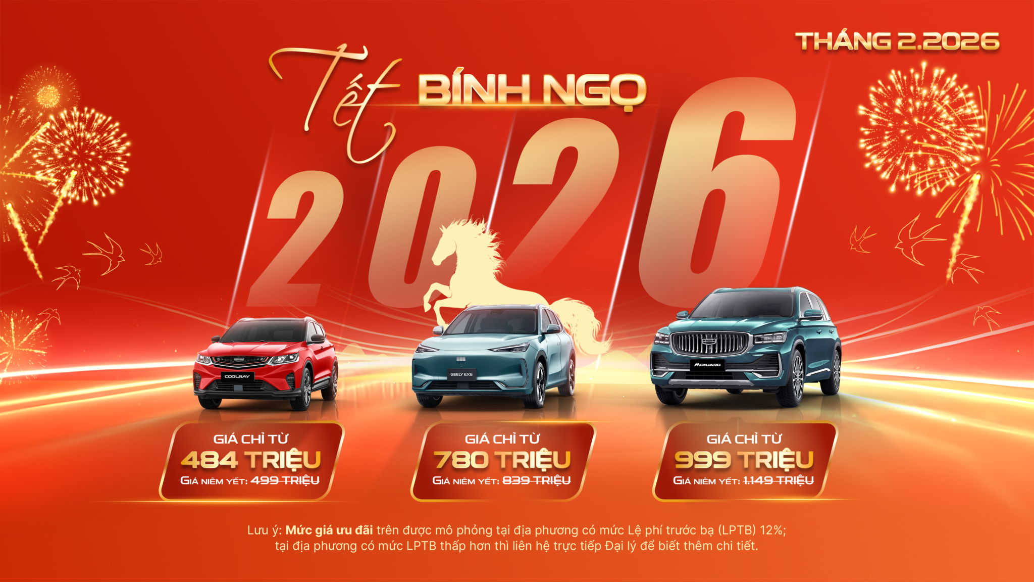Khởi đầu năm mới 2026, chào đón Tết Nguyên Đán trọn vẹn may mắn, Geely triển khai chương trình ưu đãi đặc biệt trong tháng 2, mang đến cơ hội sở hữu xe với mức giá hấp dẫn dành cho khách hàng trên toàn quốc.
